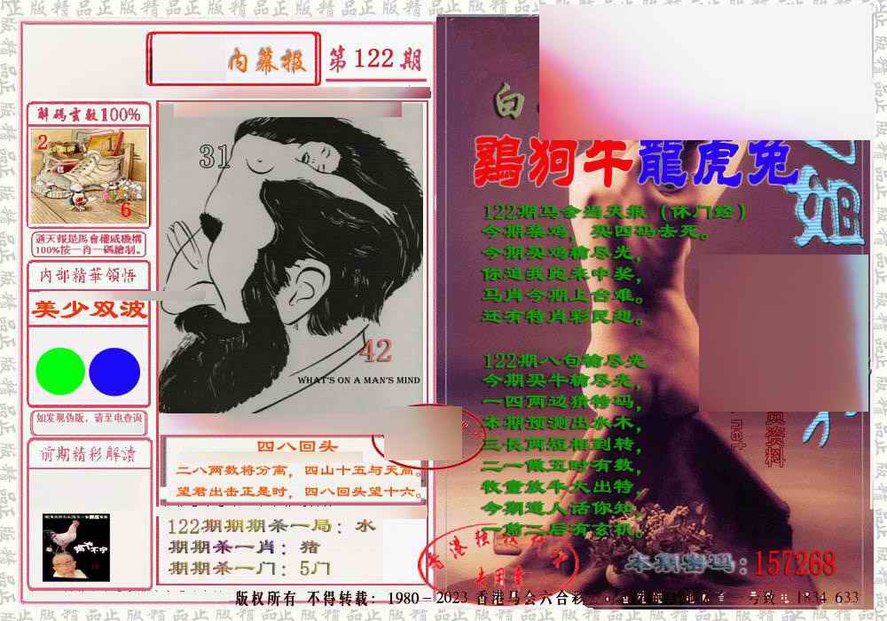 1581 精准传真报 1582 新天线宝宝内幕报 1583 当期狗仔版 1585 白姐泄密