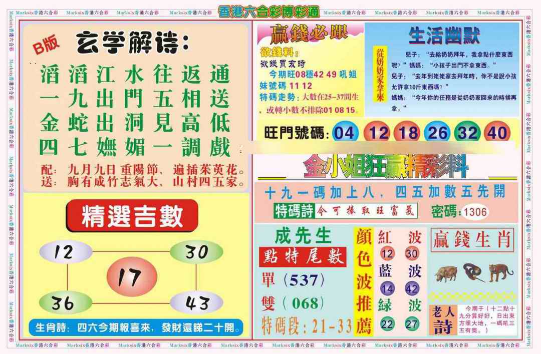 063 六合禅机A 064 六合禅机B 069 特 新 报A 070 特 新 报B